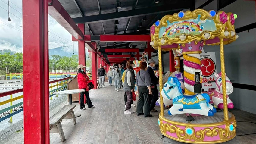 走進室內,最引人注目的莫過於那矗立在中央的巨大紅色赤鬼造景。這隻手持巨大惡棍麵包的妖怪,氣勢驚人且充滿張力,是山寨村最經典的標誌,也是遊客來此必拍的打卡熱點。儘管戶外區域的部分遊樂設施已停止運作,略帶廢墟感,但館內濃厚的日式村寨氛圍與特色裝潢,仍舊保留了幾分當年的風采。對於初次造訪的遊客或親子家庭來說,這裡獨特的視覺風格依然相當具有吸引力,是個能輕鬆拍照留念的特色空間。