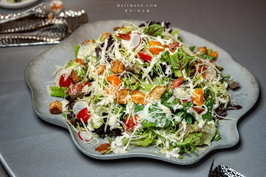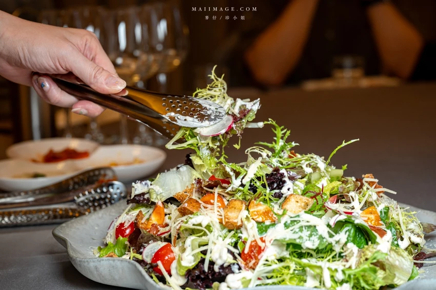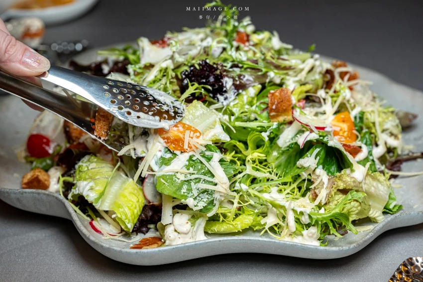 澎湃凱薩沙拉開胃,海鮮煎餅厚實酥脆