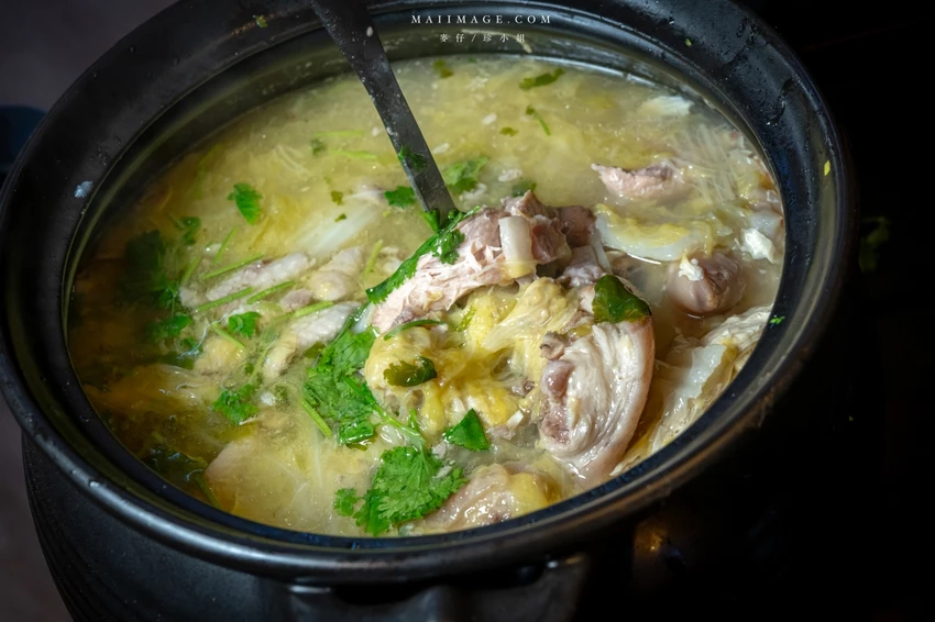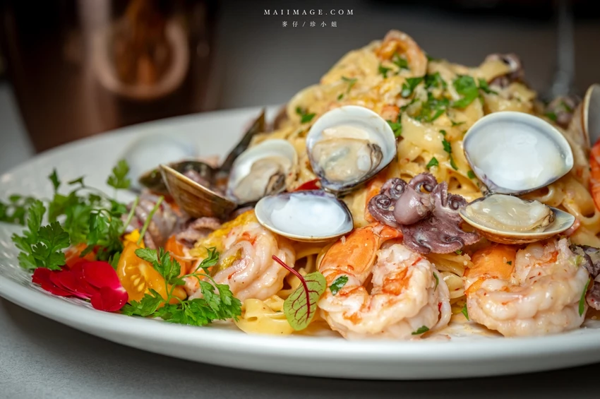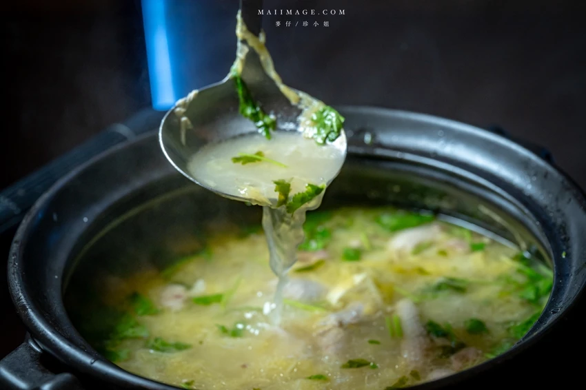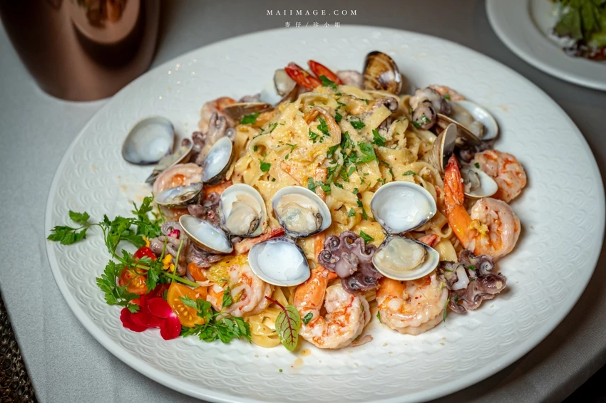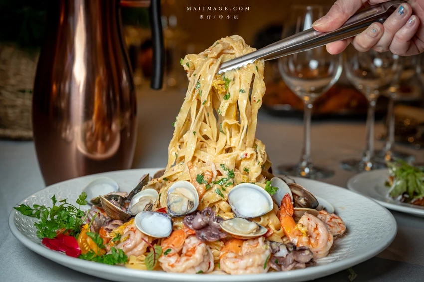 喜歡麵食的朋友不能錯過「韓式泡菜海鮮義大利麵」,寬麵條吸附了濃郁的白醬與泡菜香氣,搭配大尾鮮蝦與飽滿蛤蜊,層次豐富。而適合冬日的「原盅豬腳雞湯」更是誠意之作,乳白色的湯頭經過長時間熬煮,富含滿滿膠質,鍋內除了雞肉還有豬腳,搭配白菜與香菜一同享用,湯頭濃郁卻不膩口,暖心又暖胃,是聚餐結尾的最佳選擇。