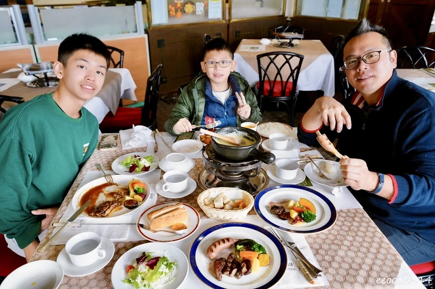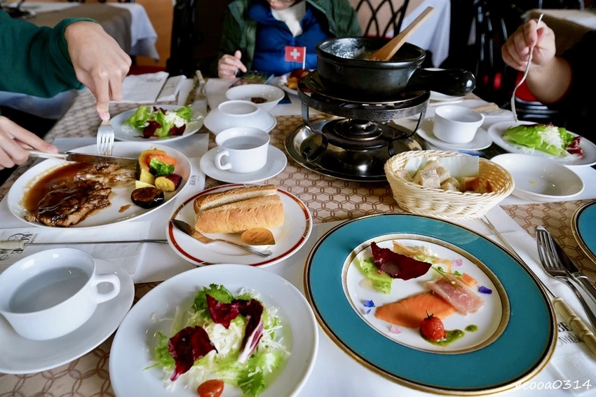 除了起司鍋,也有牛排、排餐等主食選擇,搭配沙拉、湯品與配菜,對於帶小孩的家庭來說,店內也有提供兒童套餐,份量與口味都很友善。