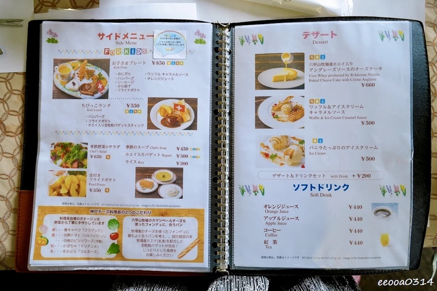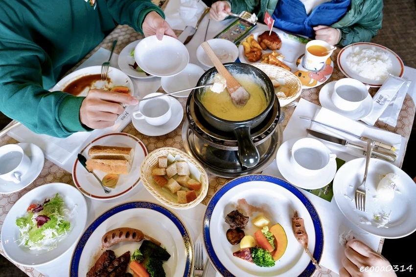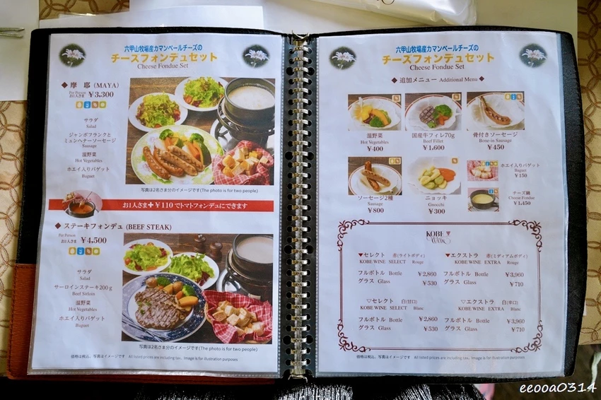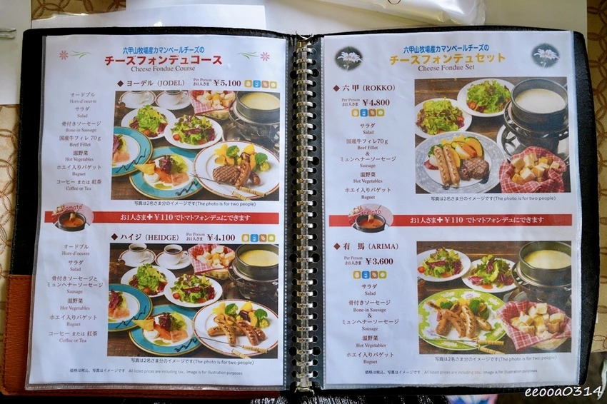 六甲山 Q・B・B チーズ館的菜單以牛排套餐及起司火鍋為主。其中最受歡迎的當然是招牌起司鍋(チーズフォンデュ),濃郁起司全程加熱保溫,搭配麵包、蔬菜一起吃,香氣十足又不會膩口,很適合多人共享。