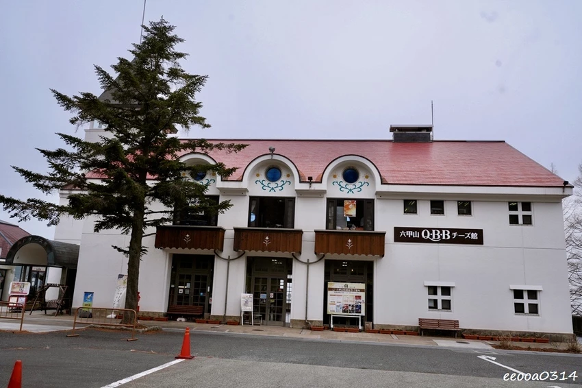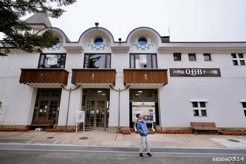 Q・B・B チーズ館就位在六甲山牧場停車場旁,外觀是很可愛的歐風建築,白色牆面搭配木質元素,在六甲山的山景包圍下特別有度假感。遠遠看到就會讓人有種「好像來到歐洲山城」的錯覺。