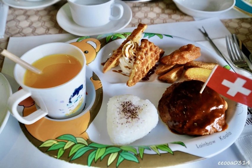 有比較小的孩童來用餐可以選擇兒童餐,日幣850元包含漢堡肉、飯糰、奶油鬆餅、炸馬鈴薯及飲料,內容簡單、份量適中,小朋友吃得很開心。