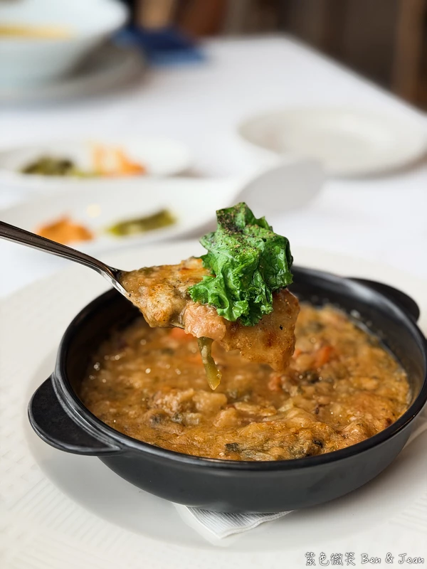 香滑綿密的濃湯與帶有咬勁的章魚形成鮮明對比,既有蔬菜的清爽,又有海鮮的鮮美,口感十足啊