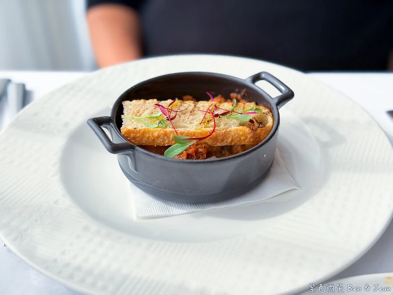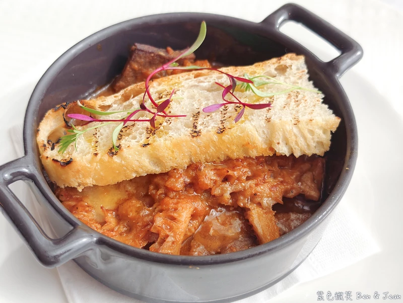 烘烤過的大鮮菇上放著水牛乳酪還有蔬菜餡,水牛乳酪的軟滑與野菇的 Q 彈形成有趣對比