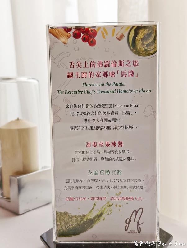 重點是這個馬醬 (甜椒堅果辣醬、芝麻葉酸豆醬),這可是主廚將家鄉義大利南部的美味帶來的