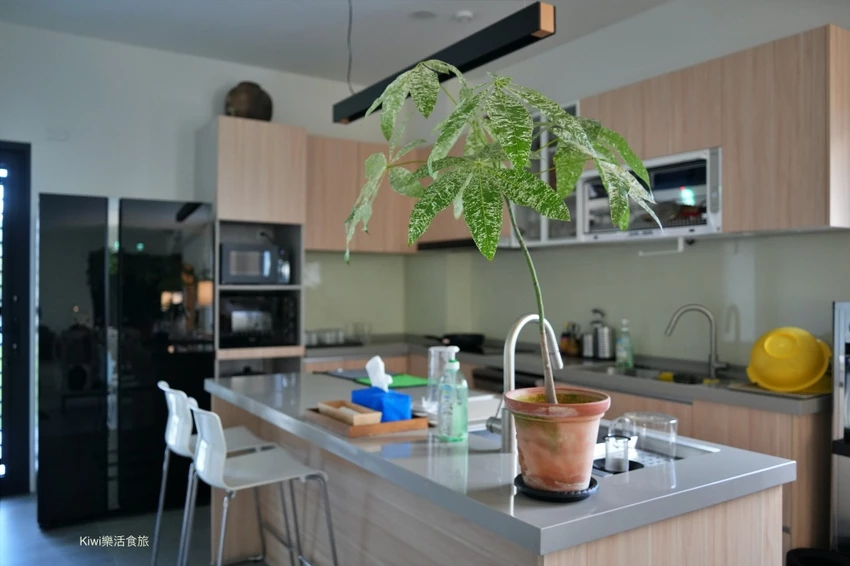 公共空間寬敞舒適,大面積的落地窗設計將室外綠意引入室內,採光極佳。一樓設有休憩大廳、餐廳區與開放式廚房,廚房設備一應俱全,包含 IH 爐、微波爐、鍋具及咖啡機,還有貼心的迷你自助吧提供豆漿牛奶。若選擇包棟入住,更能獨享客廳影視、KTV 歡唱設備、電動麻將桌以及戶外烤肉區,非常適合親朋好友一同聚會同樂,享受不被打擾的私密假期。
