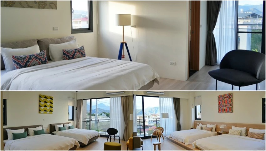 民宿提供四間雙人房與四間四人房,皆附有獨立衛浴。房內設計延續溫潤的木質色調,搭配簡約有質感的沙發,營造優雅放鬆的氛圍。最棒的是每間房都有大片落地窗,躺在床上就能將連綿起伏的山脈與田園風光盡收眼底。衛浴採乾濕分離,備品特別選用與日月潭紅茶相呼應的「上山採藥」茶香系列,讓沐浴時也能感受到在地的舒心氣息,洗去一身疲憊。