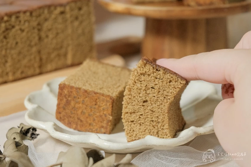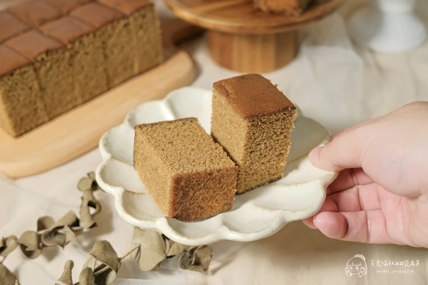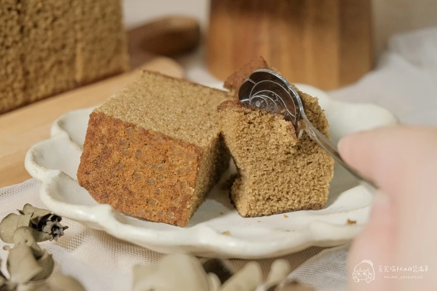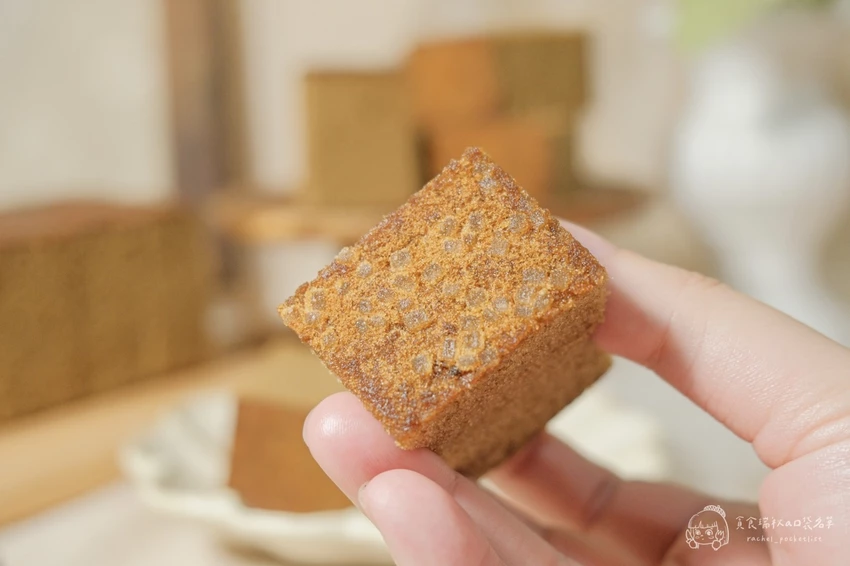 四月南風卡斯提拉蛋糕最迷人的靈魂所在,絕對是底層那獨具特色的「雙目糖」顆粒。蛋糕本體保持著柔軟濕潤的口感,但咬到最底層時,會感受到雙目糖帶來的微微爽脆與「卡滋卡滋」的驚喜口感。這種「上層軟綿、底部爽脆」的強烈反差,瞬間拉開了味覺層次,讓人一口接一口完全不覺得膩。這不是第一口就驚豔的甜點,而是那種會讓人默默吃完一整塊,並深深記住那份特殊口感的美味。
