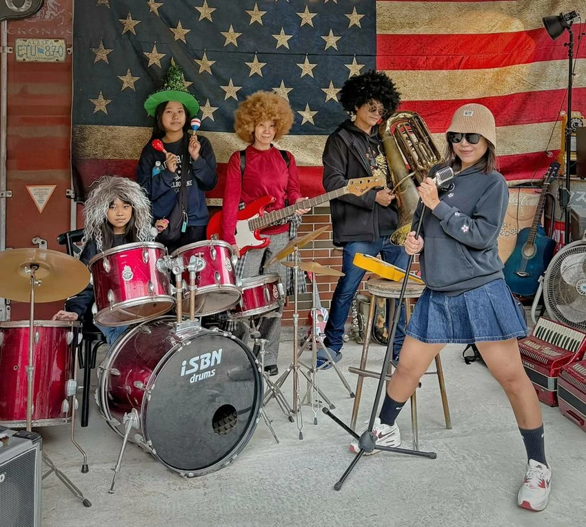 來到園區的中層(即入口處層),這裡展現了精彩的混搭風格。一邊是充滿異國情調的歐美風小鎮街道與氣勢磅礡的歐風羅馬城堡,走進室內場景更是精緻得讓人驚艷;轉個彎卻又能看到充滿台灣味的復古懷舊柑仔店與中藥房。特別提醒大家,在「樂團場景」旁邊的門內藏著一個幸福鐘,位置比較隱密,我們一家人也是找了好久才發現,千萬別錯過這個隱藏版打卡點。