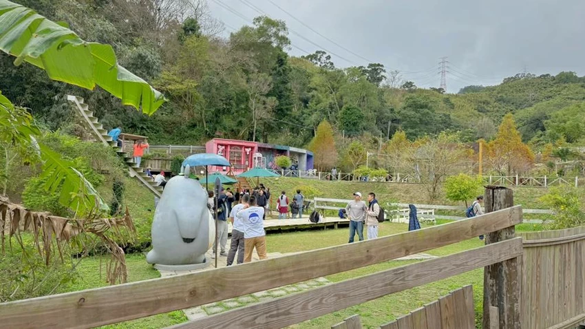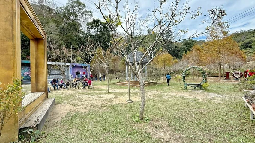 最下層則是以戶外自然景觀為主,擁有大片的草皮與浪漫的落羽松林,氛圍相當愜意。這裡最熱門的設施絕對是「幸福天梯」,想要拍出延伸至天際的絕美畫面,通常需要花點時間排隊等候。此外,這一區還設有可愛的龍貓公車站與慵懶的露營風場景,非常適合在拍累了之後,在此稍作休息,感受山林間的自然氣息。