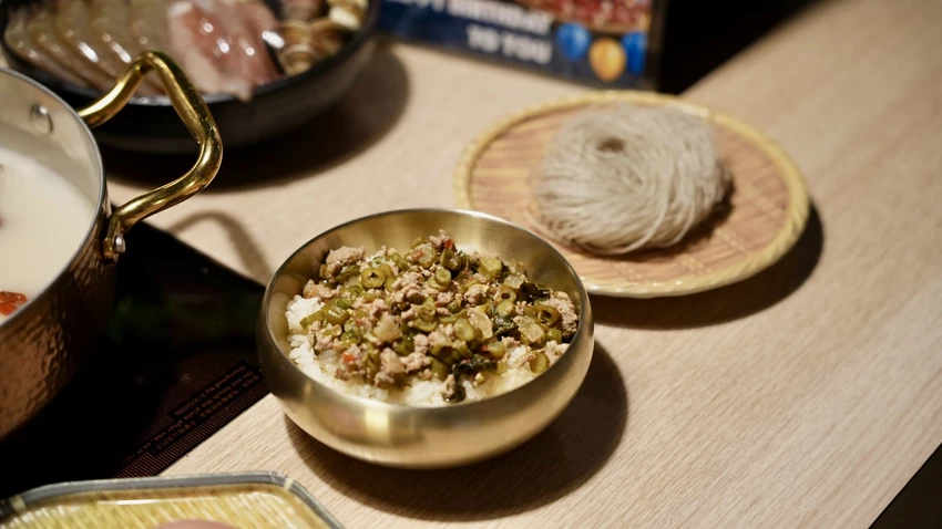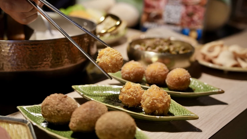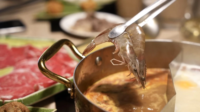 泰暖冬陰功湯是將泰國最具代表性的湯品做成火鍋,融合了檸檬的酸、辣椒的辣、魚露的鮮甜,再加入椰奶增加濃郁口感,整體酸辣夠味,涮肉、煮海鮮都很好吃,風味強烈非常下飯!