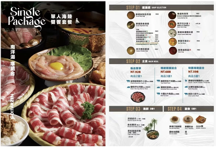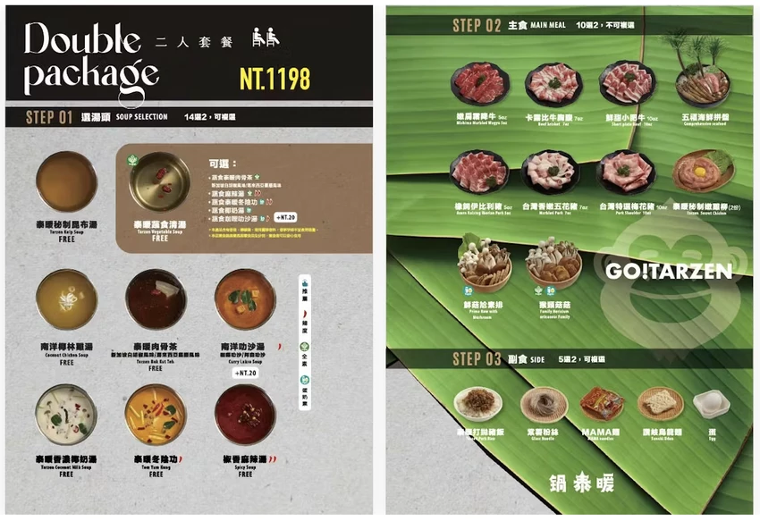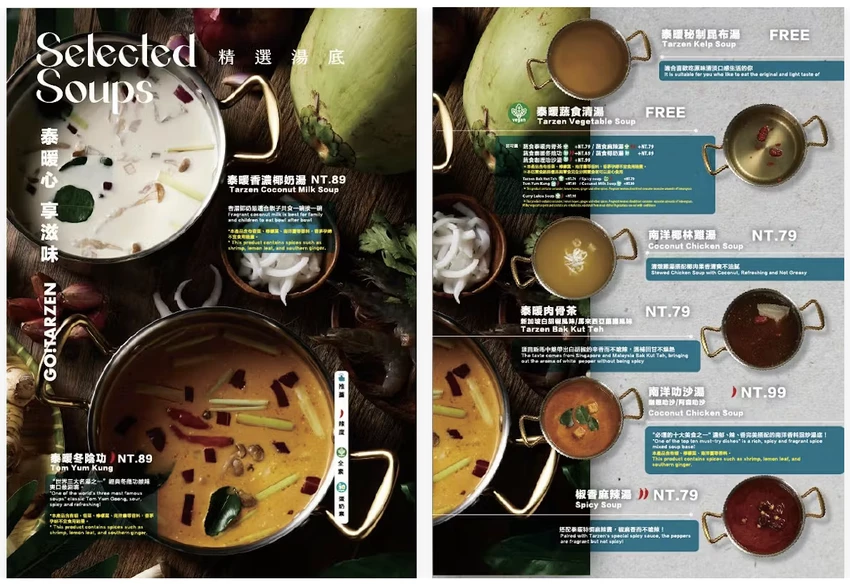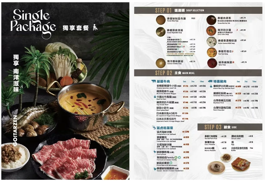 鍋泰暖主打泰式南陽火鍋,特別推薦兩款湯底:泰暖冬陰功湯、泰暖肉骨茶湯,一個重口味、一個溫順暖胃,適合鴛鴦鍋的組合。