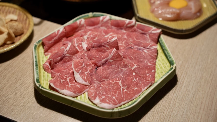 我們今天點的是雙人套餐,包含兩種肉品或海鮮,特別推薦「嫩肩霜降牛」,口感軟嫩適中,油滑分布均勻,吃起來有肉香不會乾柴,入口還很軟嫩,涮煮冬陰功湯好吃,非常夠味不用再沾醬囉~