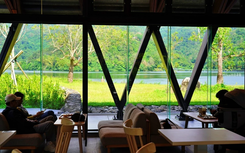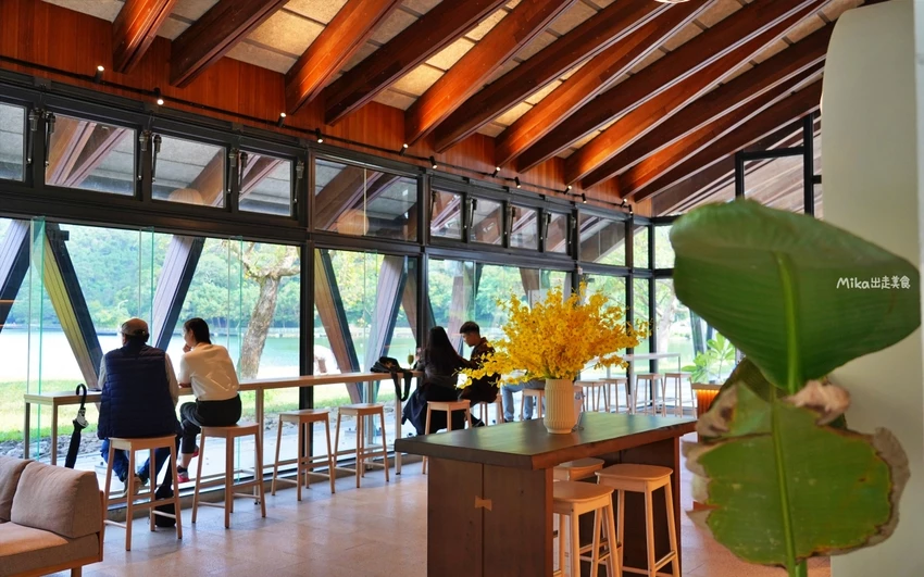 茶屋的設計風格走的是寬敞簡約路線,運用了溫暖的木質色調與周遭的自然環境完美融合。最奢侈的莫過於那一整排的大片落地窗,讓室內空間與戶外美景零距離接觸。座位配置相當充裕,平日前往通常不需預約,其中面湖的「湖畔第一排」座位總是最搶手。特別提醒沙發區有限制需三人以上才能入座,想要舒適地窩在沙發上看湖景,記得多揪幾位好友同行。