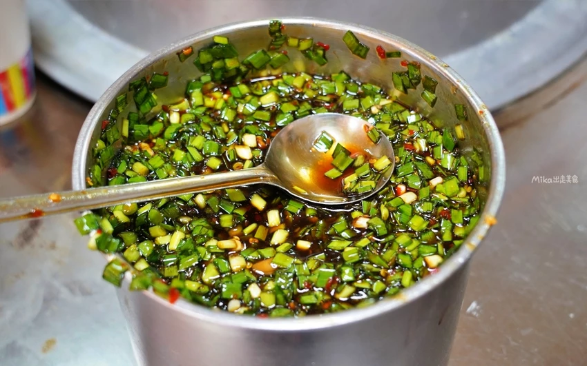 除了蛋餅煎功了得,店家的特製沾醬更是靈魂所在。這裡的沾醬非常有特色,是使用帶有客家風味的「韭菜醬油」,搭配上一種甜甜的「粉紅米漿」。這種粉紅醬有點類似肉圓的沾醬,鹹甜交織的滋味非常開胃。將酥脆的蛋餅蘸上滿滿的醬汁,韭菜的香氣與米漿的甜味在口中融合,讓蛋餅的風味層次瞬間升級。這獨門的醬料組合,是讓這份蛋餅在宜蘭眾多早餐店中脫穎而出的關鍵。