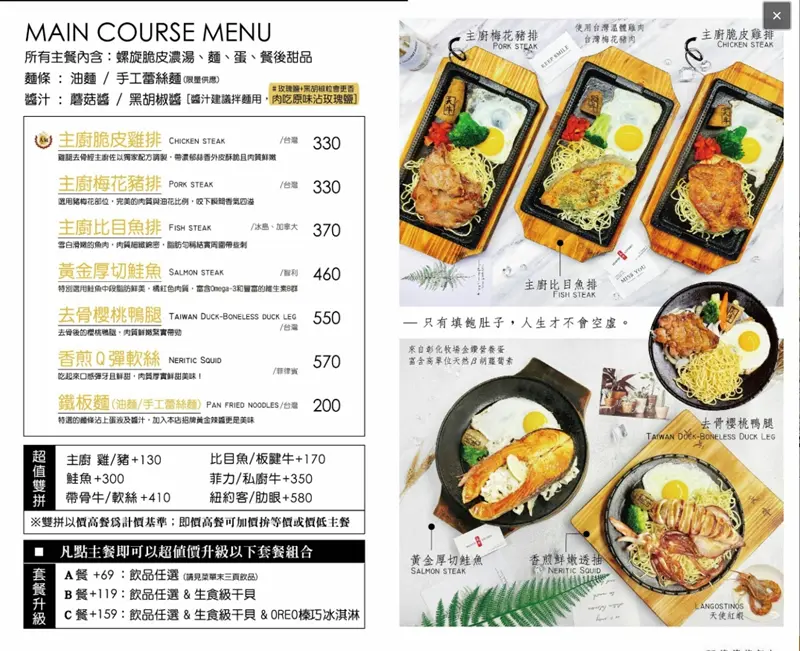 天牛私廚牛排|菜單價位