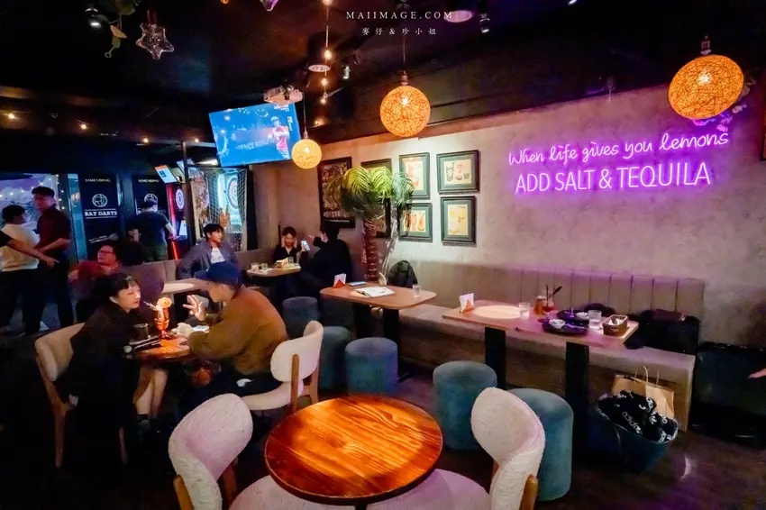 推開大門彷彿進入另一個世界,店內空間寬敞舒適,霓虹燈飾與動感的音樂節奏營造出絕佳的舒壓氛圍。這裡的一大特色就是隨處可見的飛鏢機台,不時傳來比賽的熱血吶喊聲,就算不親自下場也能被這股歡樂氣氛感染。除了飛鏢區,還有超大 120 吋投影布幕轉播運動賽事,非常適合三五好友相約看球賽。如果你喜歡近距離欣賞調酒師的精湛技藝,吧台區絕對是你的首選搖滾區。