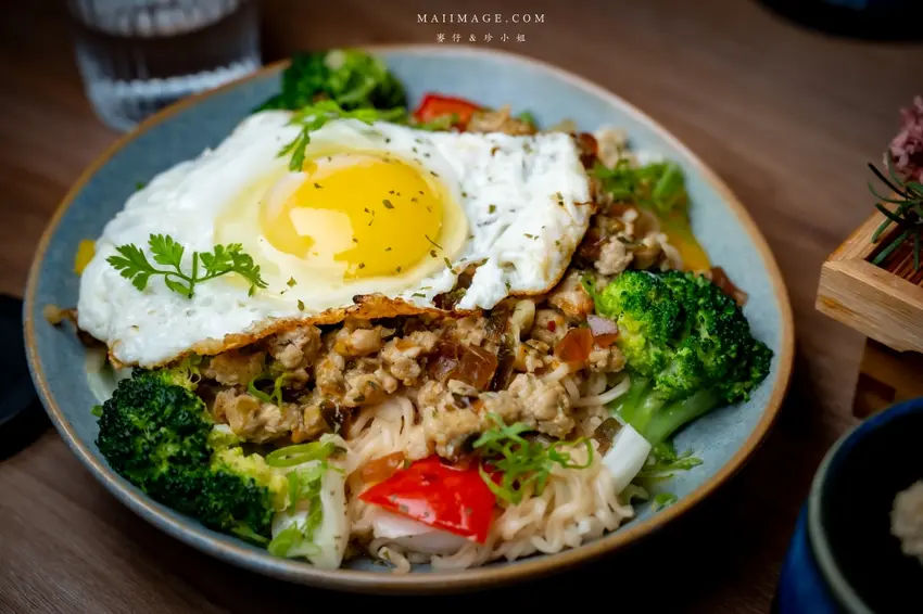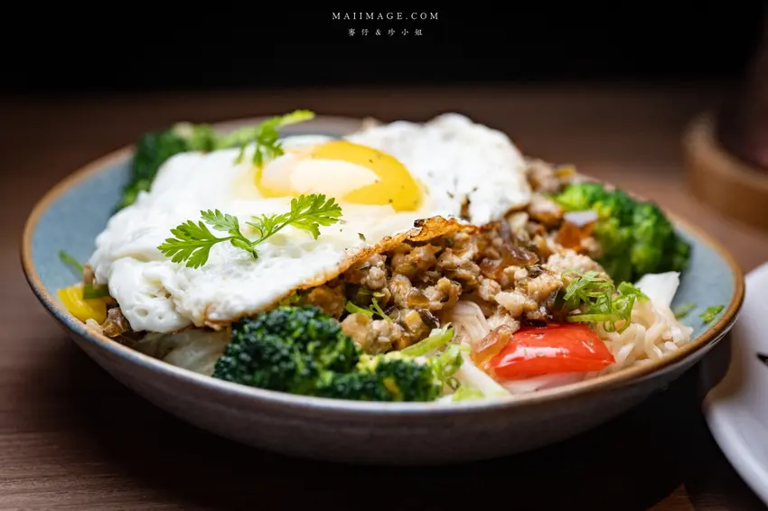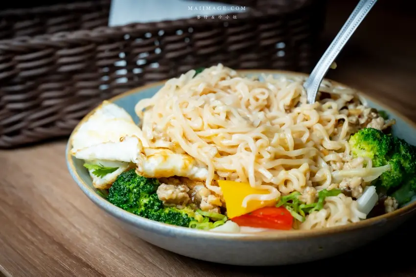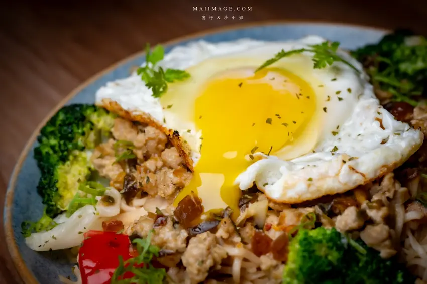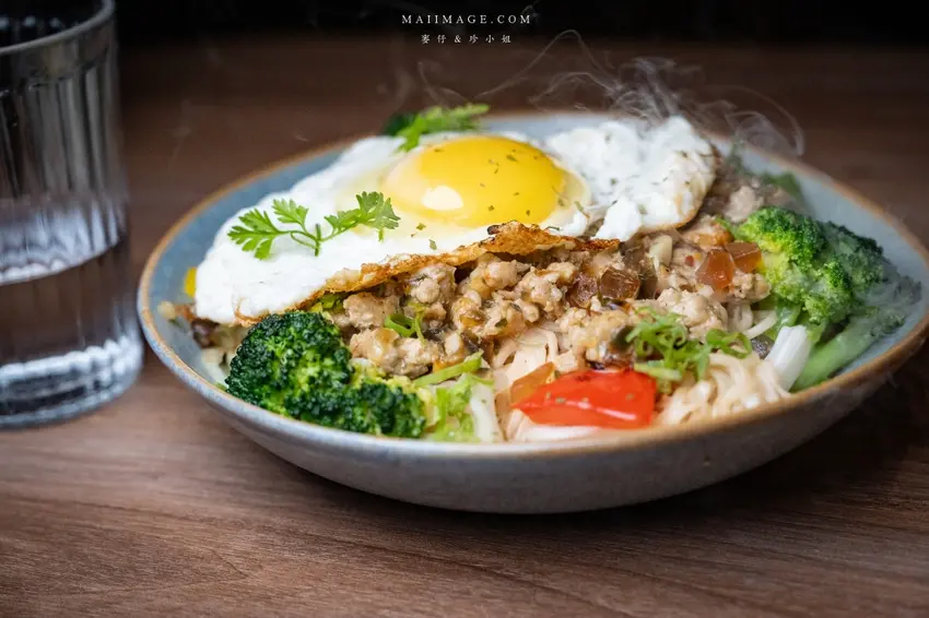 來酒吧喝酒怎能少了下酒菜?這裡的「炒泡麵」絕對是必點神作。強烈推薦「椒麻皮蛋」口味,麵體上鋪著一顆誘人的半熟蛋與大量花椰菜、甜椒等蔬菜,營養又均衡。劃開蛋黃讓蛋液緩緩流下,與底層帶有微微椒麻香氣的皮蛋醬汁攪拌均勻,每一口都滑順濃郁、香辣過癮。趁熱吃下那彈牙的麵條,鹹香滋味讓人欲罷不能,份量十足適合兩人分食,絕對是台北宵夜場的頂級享受。