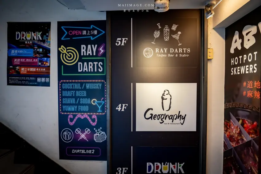西門町「RAY DARTS Taipei Bar」隱身大樓五樓,主打世界特色創意調酒與超強炒泡麵,是飛鏢愛好者與小酌聚會的推薦酒吧。