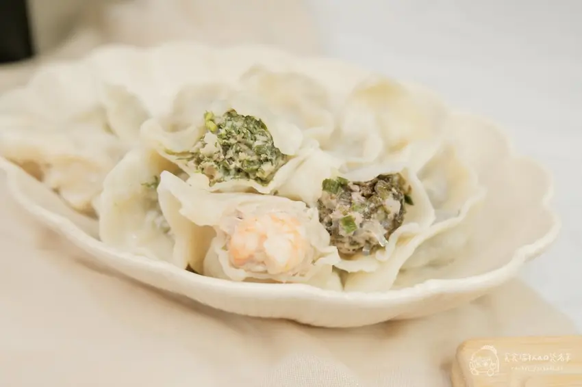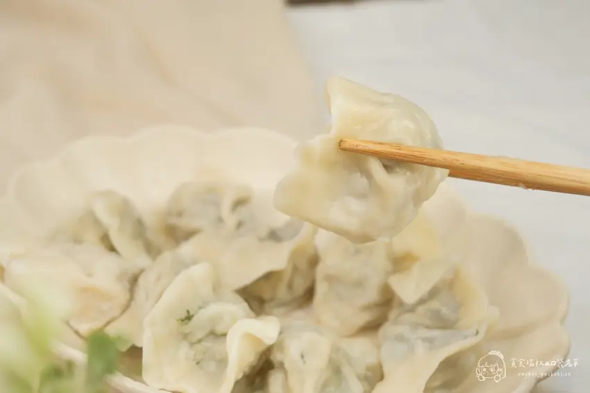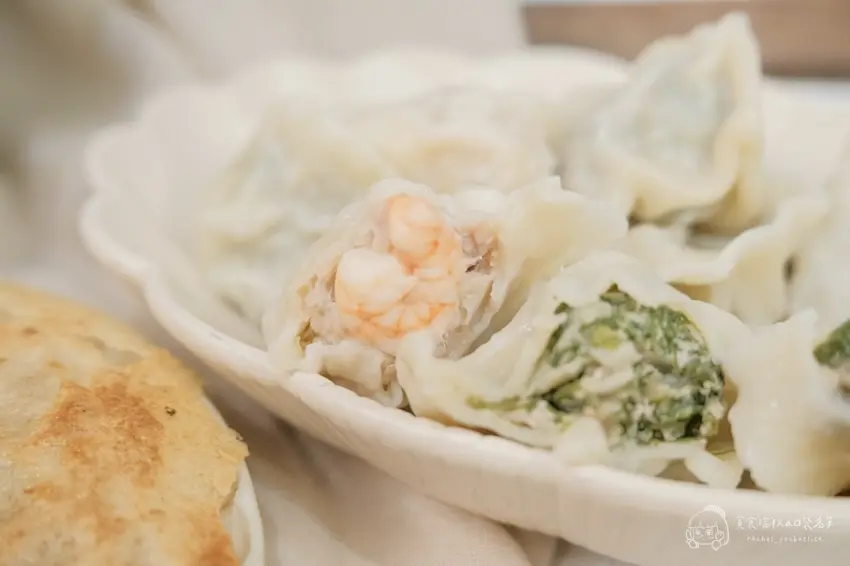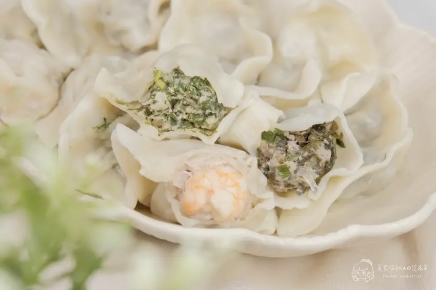 如果家裡有挑嘴的小孩或長輩,這款「鮮蝦高麗菜水餃」絕對是零失誤的熱銷首選。店家對於蝦仁的挑選非常嚴格,堅持使用通過多項藥檢認證、不泡藥水的淨水養殖蝦仁,避免腸道殘留污泥。搭配爽脆的新鮮高麗菜與國產豬肉,一口咬下能同時感受到蝦肉的鮮甜與蔬菜的脆感。多層次的豐富口感吃起來清爽不油膩,每一口都是真材實料的鮮美,難怪能成為店內長年不敗的銷售冠軍。