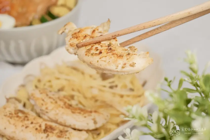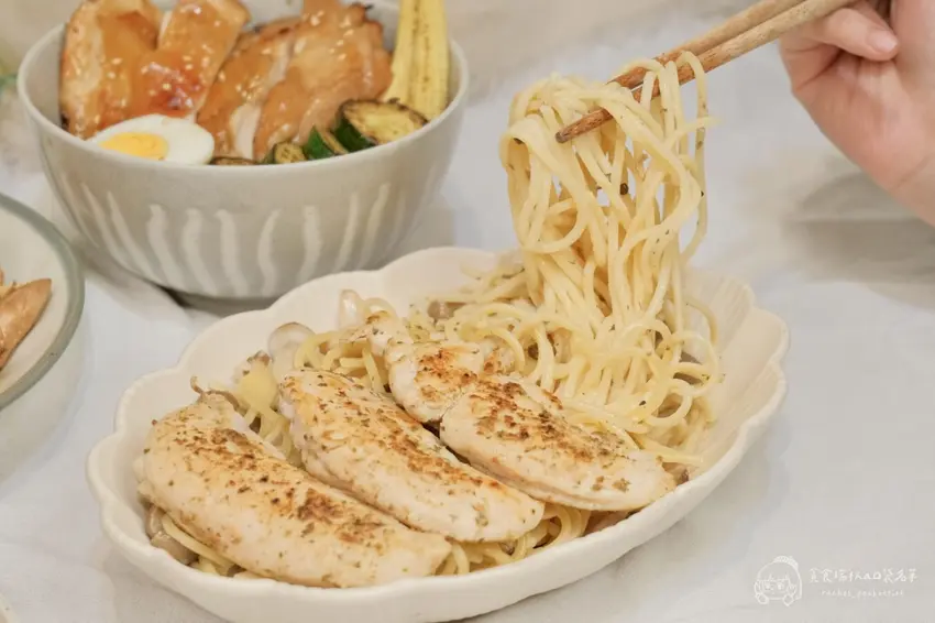 香料雞柳白醬義大利麵,低脂軟嫩平衡濃郁