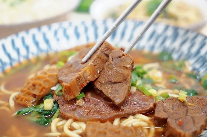 牛腱心肉無論是在紅燒牛肉麵裡,還是搭配乾拌麵,都給得大塊又厚實,一看就讓人食指大動。咬下去軟嫩中帶有彈性,肉質緊實卻不乾澀,牛肉香氣濃郁,每一口都能感受到牛腱肉特有的肉香與膠質口感。