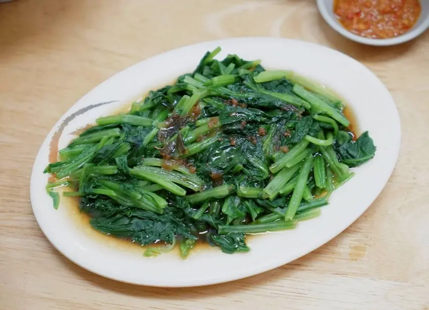 燙青菜會隨著季節更換,這天是當季的菠菜超好吃。