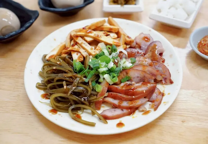 小菜部分我們選了豆干、海帶以及豬頭皮,都是看似簡單卻很耐吃的經典款。豆干滷得相當入味,口感紮實卻不乾硬,咀嚼時能感受到淡淡的滷香;海帶則是軟中帶點脆度,吃起來清爽不膩,很適合在吃麵的空檔來上一口。豬頭皮表現也很不錯,口感Q彈帶點膠質感,處理得乾淨不油膩,越嚼越香。再搭配店家自製辣椒一起享用,辣椒的香氣與微辣感立刻替小菜加分,整體風味層次更豐富,也讓人忍不住一口接一口。