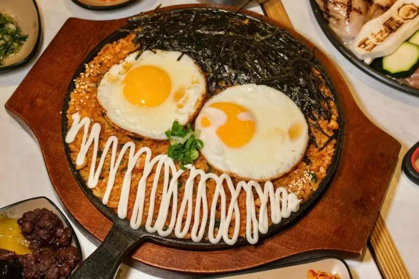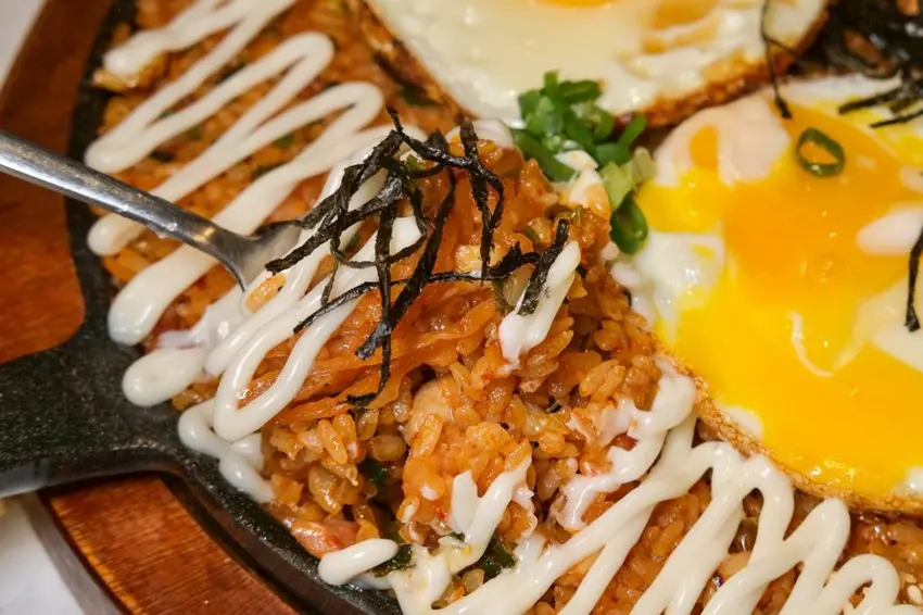 ▼主食很推薦升級成鐵板雞炒飯,看看這分量實在太有誠意,劃破半熟蛋享用,甜辣又涮嘴,每口都相當夠味!