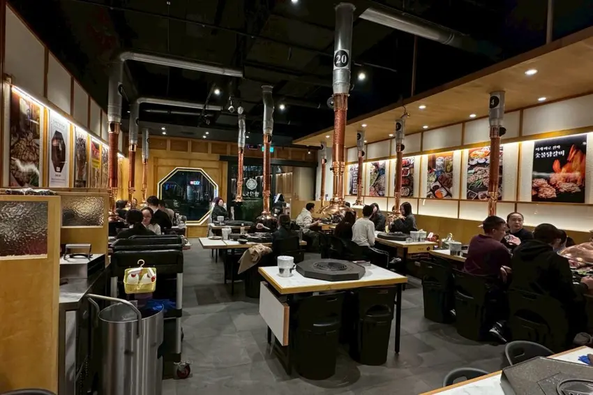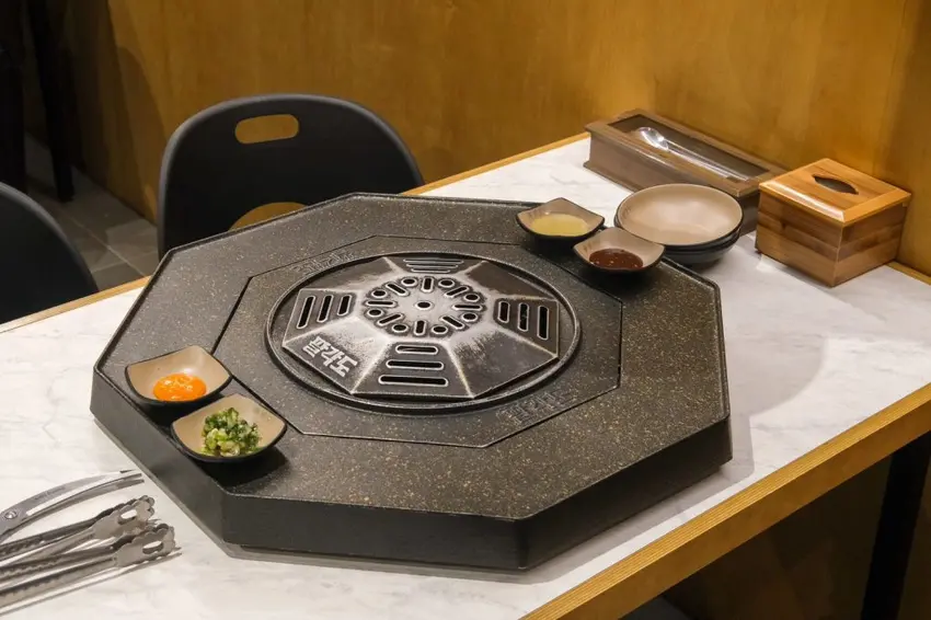 【八角道 韓國炭火烤肉】從裝潢、器皿、到獨家設計的八角烤盤,都讓人有種回到韓國的感覺,座位以兩人~六人桌為主,無論獨自來或聚餐都很適合!