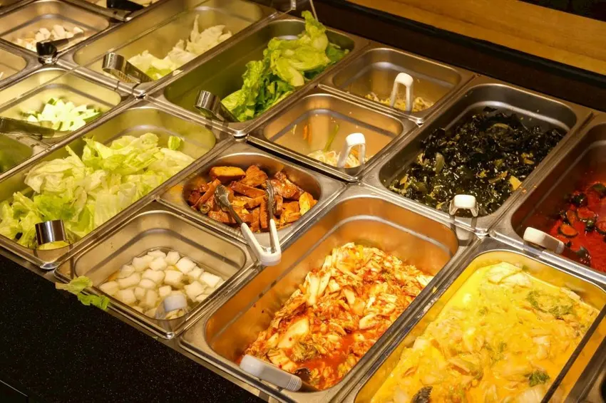 【八角道 韓國炭火烤肉】自助吧提供韓式小菜(辣蘿蔔、辣泡菜、辣豆芽、海帶芽、黃金泡菜)