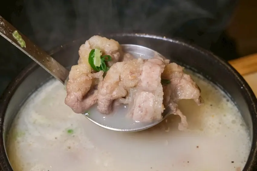 ▼我心心念念的牛肉雪濃湯這裡也有!外觀呈現乳白濃郁色澤,喝起來清爽不膩很順口,伴隨淡淡的黑胡椒和牛肉香氣,還能撈到不少的牛肉太過癮!