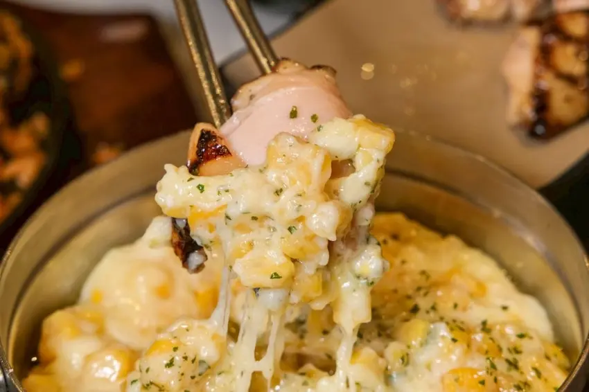 ▼起司控絕對不能錯過這吃法,把雞肉搭配起司玉米一起吃,帶來濃郁的奶香爆擊!