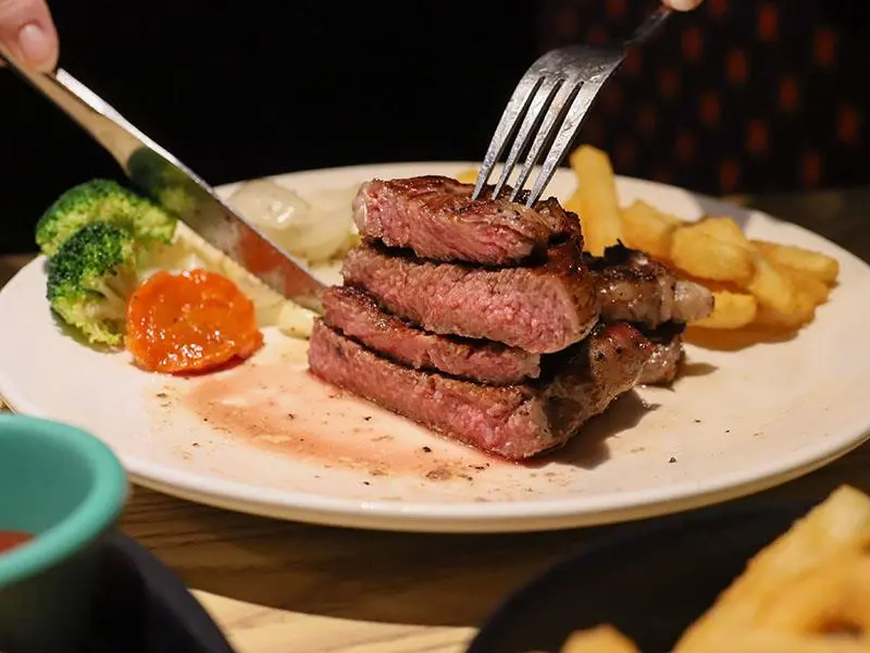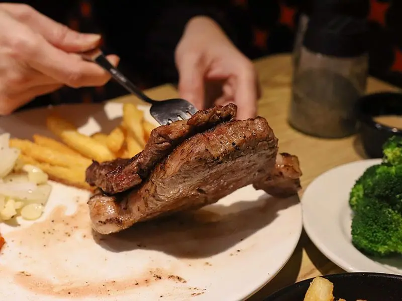 TNT 美式炭烤牛排最大的特色就是「直球對決」,主打原肉現切與炭火烹調。在店內可以看到師傅專注地控制火候,利用高溫炭火將牛肉表面烤出漂亮的焦褐色,引發梅納反應讓香氣四溢。因為肉質夠好,所以不需要過多的黑胡椒醬或蘑菇醬來掩蓋,只需簡單灑上海鹽,就能品嚐到牛肉最原始的鮮甜與炭火賦予的獨特風味。這種樸實卻充滿靈魂的烹調方式,正是它能在新竹美食戰區屹立不搖的原因。