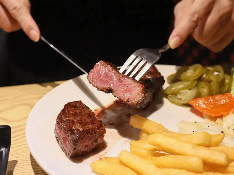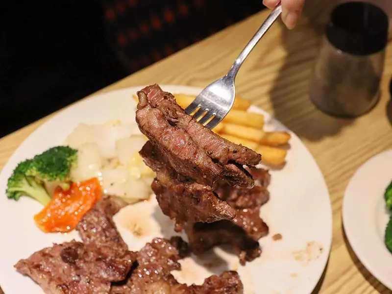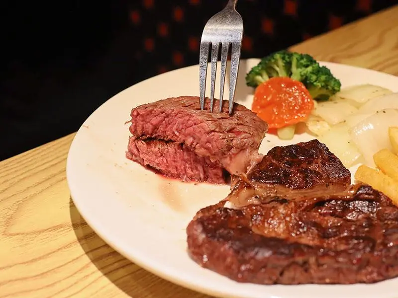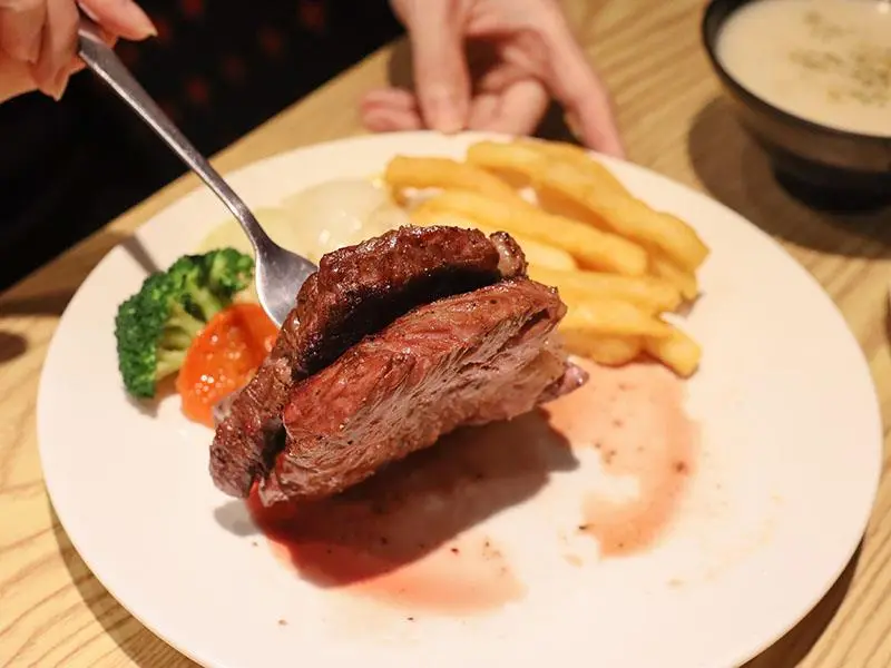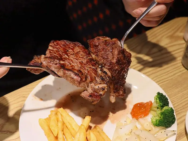 如果想要犒賞自己,預算稍微拉高一點,推薦點選「美國頂級安格斯黑牛肋眼」。10oz 的大份量售價 700 元,肋眼部位擁有漂亮的油花分布,是肉質軟嫩與油脂醇香的綜合體。師傅將熟度抓得恰到好處,保留了肉質的彈性與肉汁,入口即化的油脂香氣與厚實的肉感在口中交織。這種等級的肉品真的無需太多調味,單吃原味就能感受到老饕級的享受,是懂吃的朋友必點的夢幻逸品。