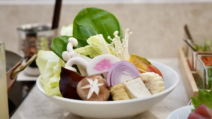 山里見月的湯頭只有一種選擇「昆布柴魚湯」,這是日式涮涮鍋最常見的湯底,以多種新鮮蔬果慢火熬煮,看似清澈的湯頭,入口鮮甜自然回甘,風味不會蓋過食材本身的味道,鮮味十足,整體偏清淡不會太鹹~
