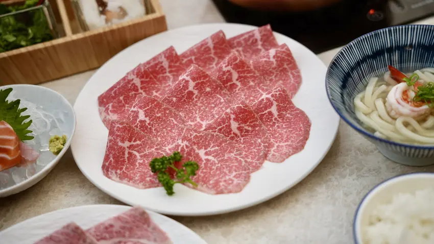 日本和牛和尚頭是牛後腿內側的部位,脂肪較少但肉質細緻,雖然不像其他和牛入口滿口的油脂感,但更能吃到牛肉本身的香氣,赤身風味較為濃厚。