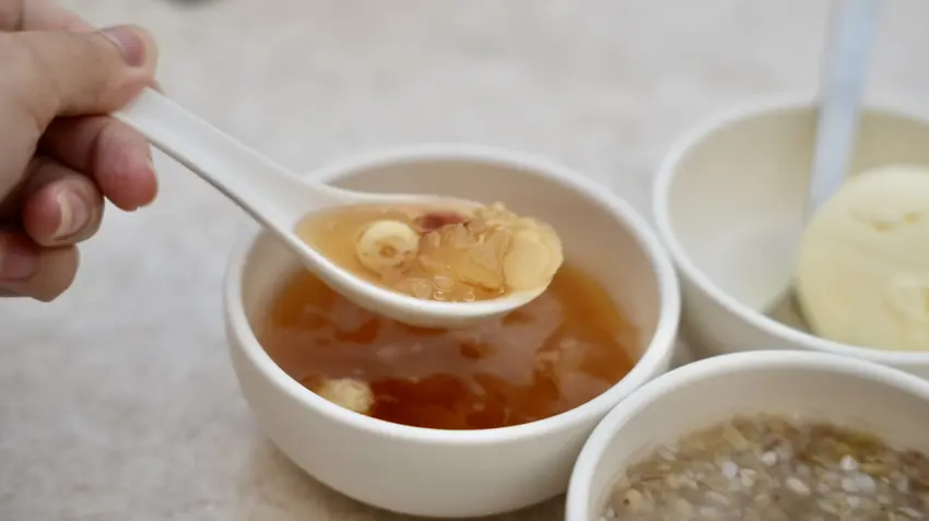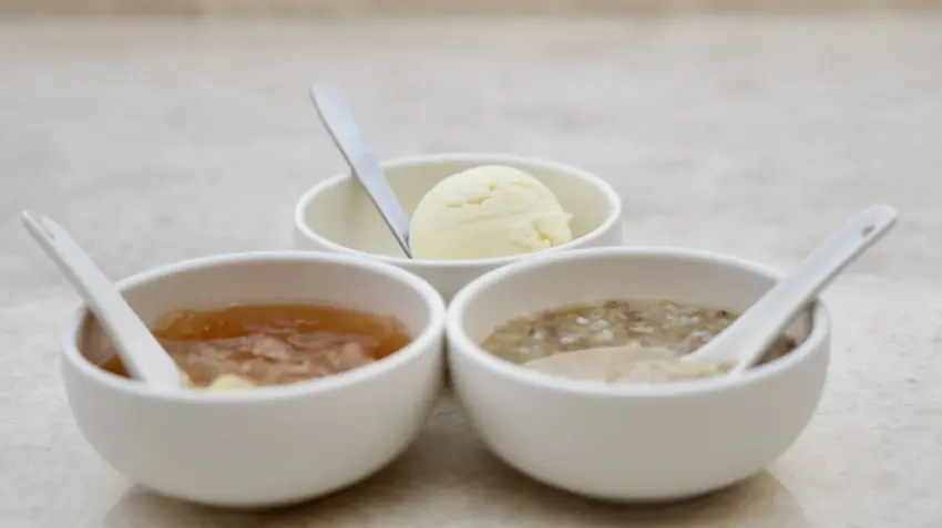 最後吃飽還有飯後甜點~甜點三種選擇:銀耳蓮子湯、蕎麥綠豆仁、冰淇淋,因為有選擇障礙,最後店家竟然多招待我們一份甜點,真是太感動了🙏
