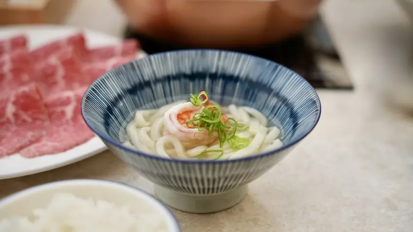 另一份附餐我們選擇日式烏龍麵,烏龍麵非常Q彈,湯頭是簡單的高湯,樸實無華但會讓人整碗喝光光的美味。