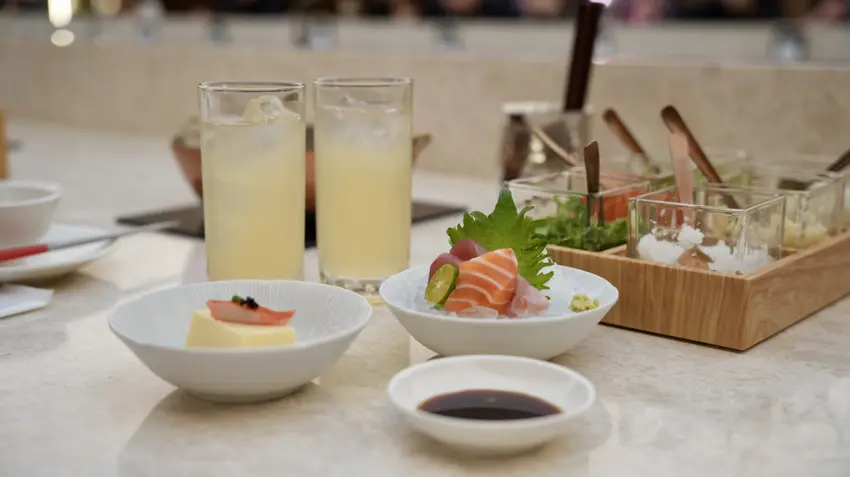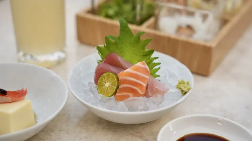 山里見月最特別的就是前菜竟然有「生魚片」,太高級了吧!前菜我推薦大家點生魚片,入口滑嫩非常新鮮,尤其是鮭魚油脂好豐富,真的太喜歡了!
