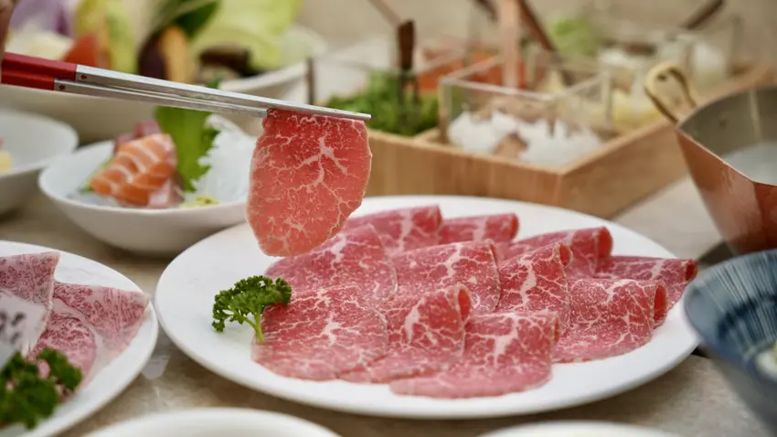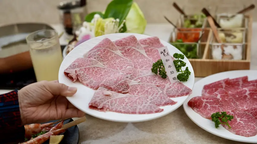 我今天選擇的部位是相對平價的「日本和牛和尚頭」,佐賀牛曾被選為日本國宴佳餚,脂肪分布均勻,油花如美麗的大理石紋理,建議涮煮5分熟,入口軟滑非常美味。