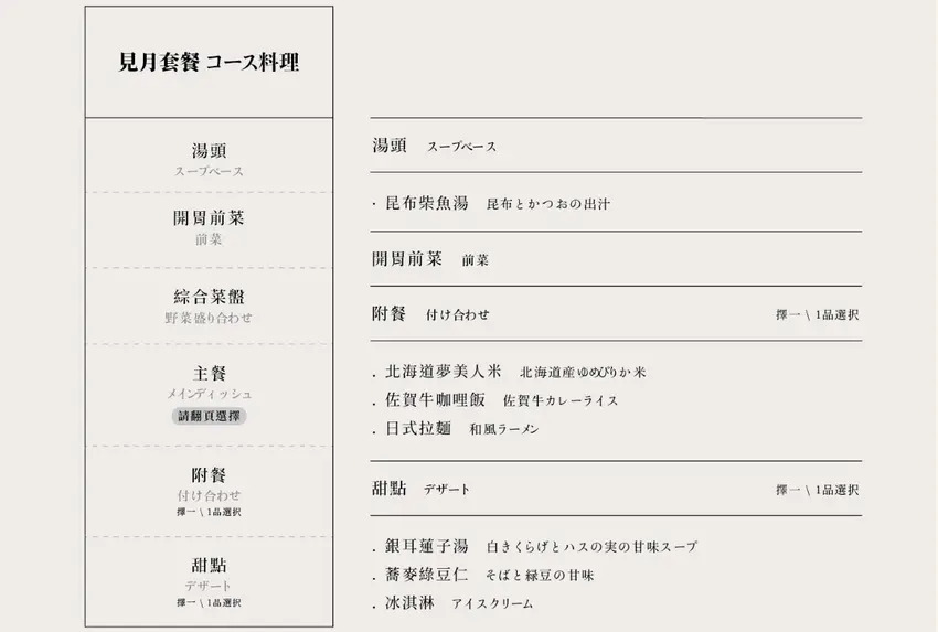 山里見月是以「個人鍋物」為主的日式火鍋,套餐均包含前菜、附餐、主餐、甜點,主打精緻高級路線,不是那種會吃非常飽的火鍋,但是可以吃到食材本身的鮮美高級,女生吃一份套餐剛剛好,男生我覺得應該會不太飽足,建議可以單點其他菜色~或是多點一碗白飯唷!