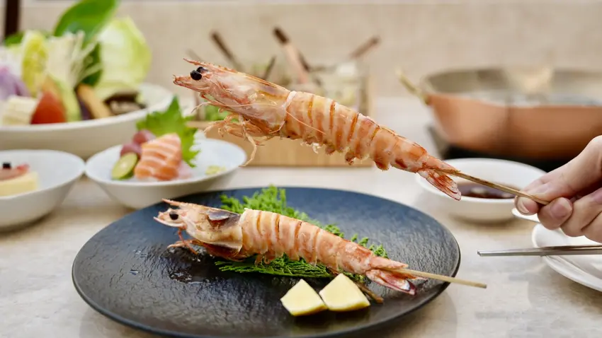 這裡除了火鍋之外,也有提供日本料理單點,因為我們家媽咪很愛吃海鮮,特別幫媽咪點了一份鹽烤明蝦,非常大隻的蝦子,口感脆彈很新鮮~