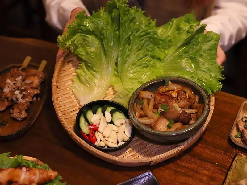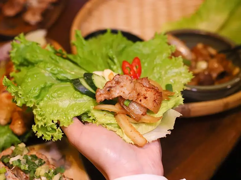 元氣燒肉生菜包肉爽,辣味噌茄子後勁超深刻