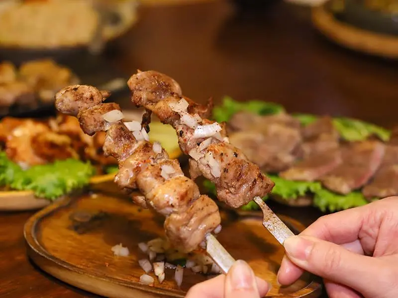 這裡的雞肉系列水準極高,更是老饕們必點的特色品項。其中最特別的莫過於「鹽烤雞生蠔」,選用雞隻最精華、口感細嫩的部位,油脂滑順卻不厚重,外型也酷似小生蠔般精緻。喜歡口感的朋友則推薦「鹽烤雞膝」,軟骨帶著清脆的咬勁,越嚼越香超下酒。而新品「香烤雞肉捲」外皮烤得酥脆微焦,內餡包著多汁的雞腿肉,熟度拿捏得恰到好處。加上外酥內嫩的香烤雞翅,每一串都能展現店家對雞肉料理的深厚功力。
