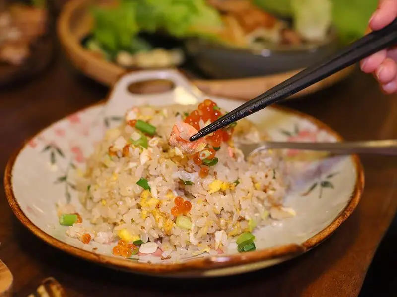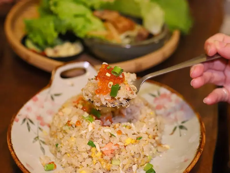 鮭魚卵炒飯粒粒分明,炸布朗尼外酥內濕潤