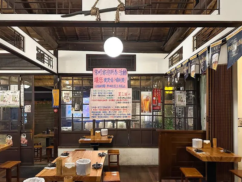 在新竹繁忙的東門城圓環附近,轉入護城河畔不起眼的府後街巷弄,彷彿瞬間穿越時空。這裡座落著一間由日治時代古蹟改建的「京町家日式串燒居酒屋」,沒有刻意營造的復古感,而是真實歲月沉澱下的木造結構與低調燈光。伴隨著炭火慢慢升溫的迷人香氣,自然的將日常喧囂隔絕在外,讓人不自覺地融入日本夜晚的熱鬧節奏。這裡不僅有道地的串燒美食,週末更舉辦嗨翻天的店內活動,是新竹在地人與在台日本人私藏的放鬆秘境。