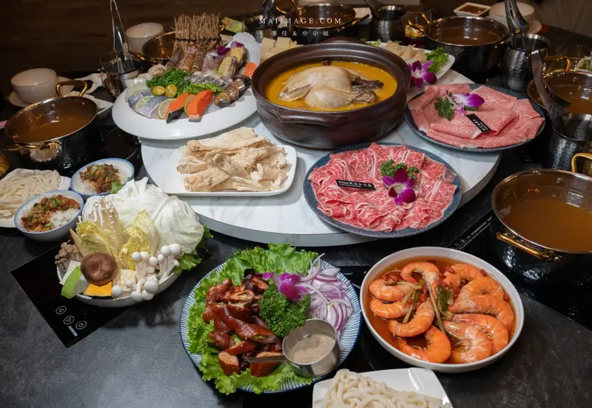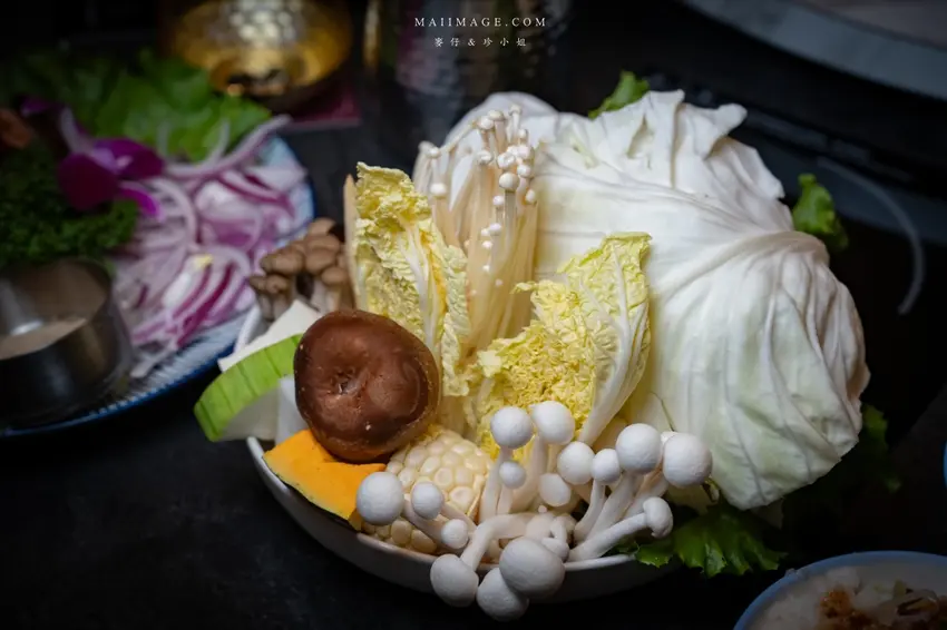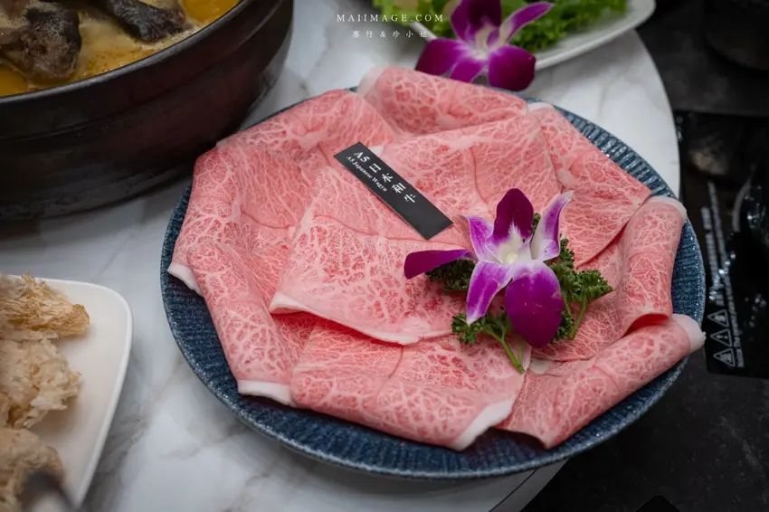 在君曜雞湯,頂級肉品也是一大亮點。想要犒賞自己,絕對要點上一盤「日本 A5 和牛」,選用沙朗部位,粉嫩的肉色分佈著如大理石般細緻的油花,只需在滾燙的雞湯中輕涮 4 至 5 秒,入口即化的口感讓人回味無窮。另一款「Prime 無骨牛小排」同樣擁有美麗的油花紋路,肉質鮮嫩多汁,搭配濃郁的雞湯一同享用,肉香與湯頭的鮮美相互輝映,是肉食主義者的最佳選擇。