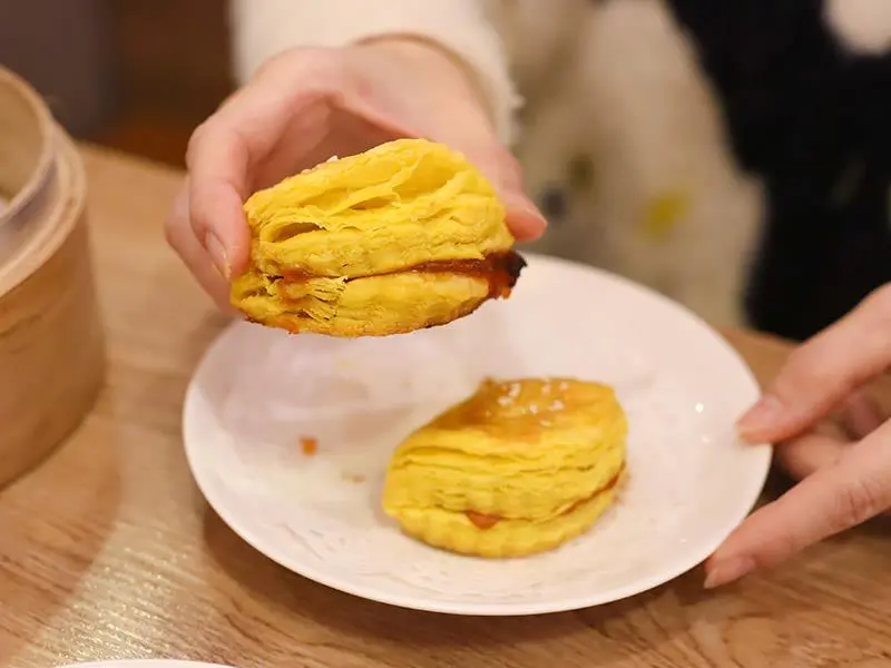 千層蜜汁叉燒酥香,外皮酥脆內餡油脂足